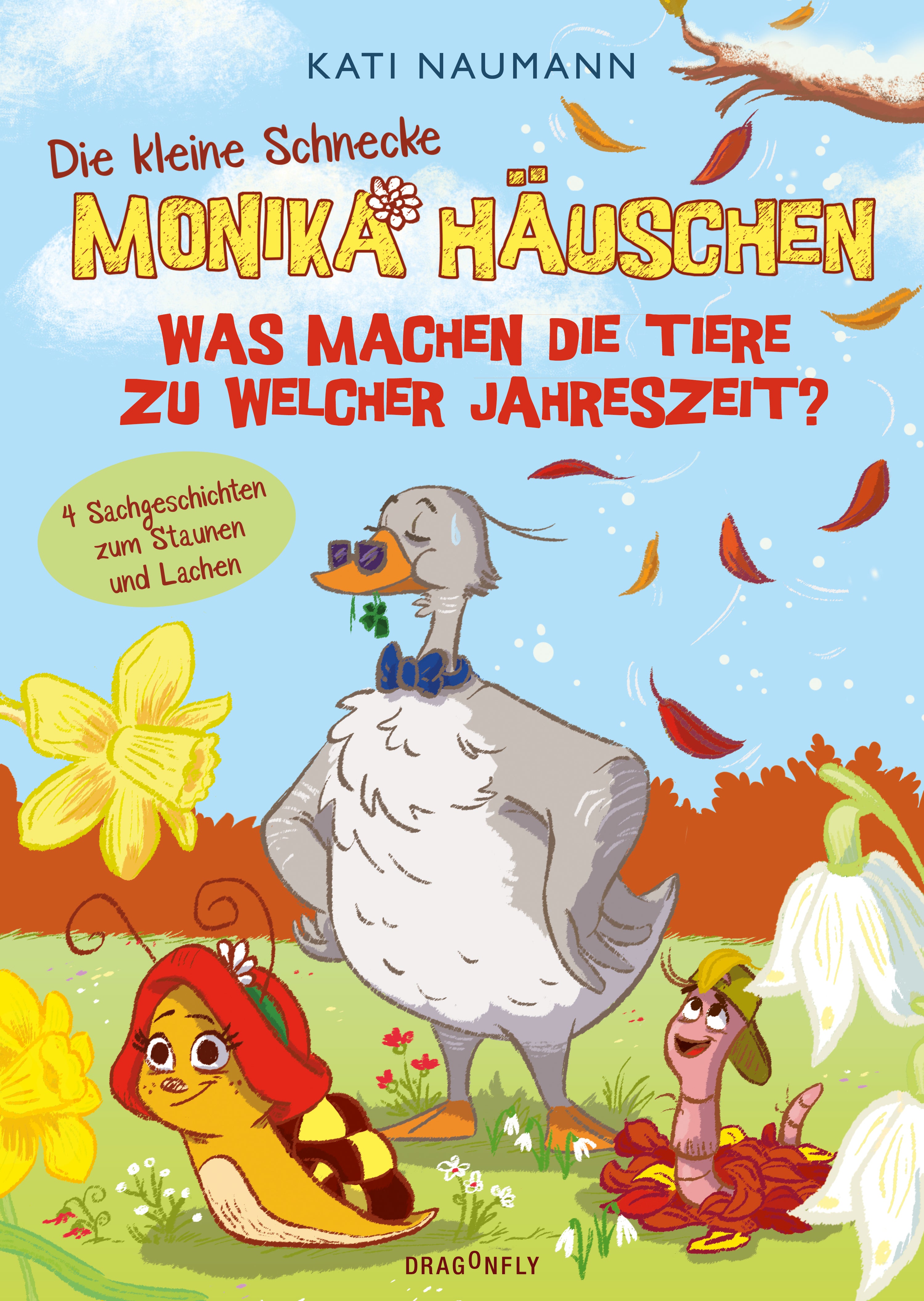 Warum verreisen Zugvögel? Weshalb schlafen Zitronenfalter im Sommer? Wieso müssen Igel im Herbst so viel futtern? Schnirkelschnecke Monika Häuschen, Regenwurm Schorsch und Graugänserich Günter entdecken die Besonderheiten in der Tierwelt in Frühling, Sommer, Herbst und Winter. Nebenbei lernen sie auch, was Freundschaft ausmacht. Denn miteinander teilen ist manchmal genauso wichtig, wie selbst genug Salatblätter zu knabbern.